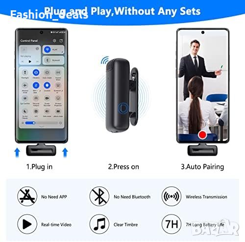 Нови 2 броя Безжичен лавалерен микрофон за тип C с калъф Android за зареждане
