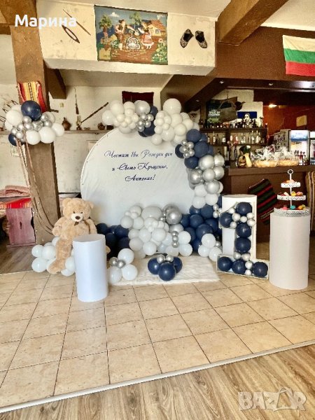 Украса с балони и арка за вашият повод(погача,кръщене,рожден ден,юбилей).Много голямо разнообразие от цветове и теми,различни декори.