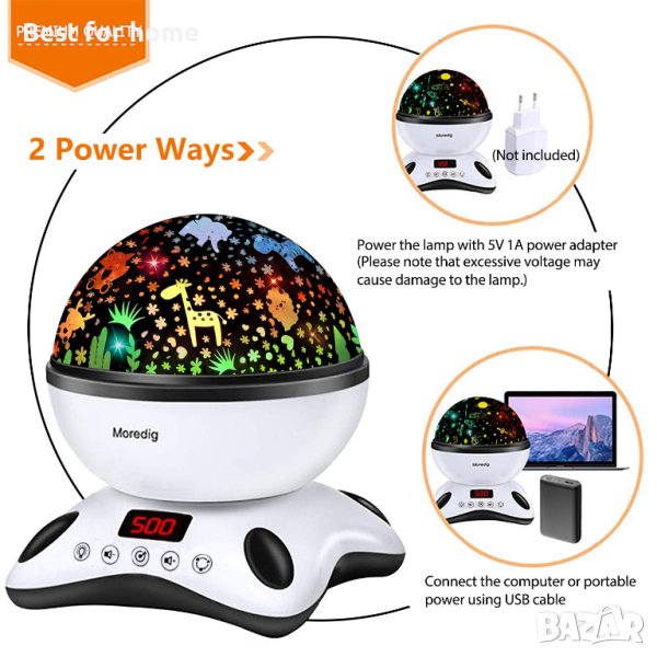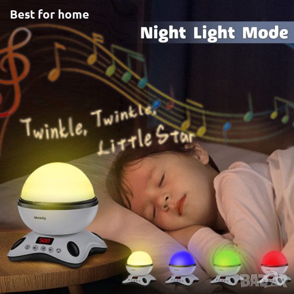 Детска прожекционна лампа с бели звуци Moredig и две плаки