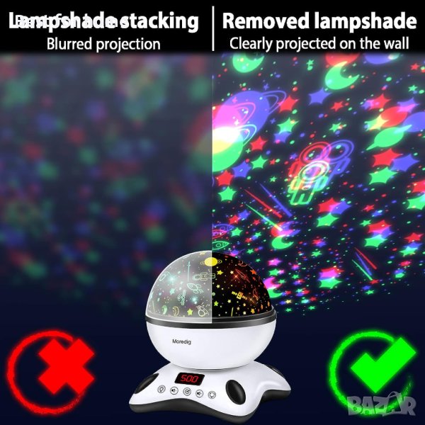Детски проектор за нощна светлина Moredig, дистанционна нощна лампа за бебе за детска стая с 12 музикални въртящи се проектор за нощна светлина за детска стая за деца, таймер, 2 прожекции, 18 режима на осветление, детски подаръци - черни