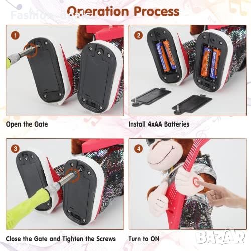 Изработена от щадящ кожата плюшен материал, тази танцуваща плюшена играчка е безопасна за игра за децата. Тя има уникален пънк вид с китара, очила и метални дрехи, което я прави визуално привлекателна и чудесна за децата.
