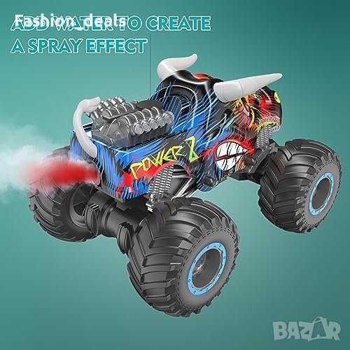 Наблюдавайте вълнението, докато нашата rc кола чудовище пръска мъгла, докато възпроизвежда динамични мелодии. Функцията за пръскане добавя допълнителен слой реализъм към играта, като прави всяко приключение незабравимо.