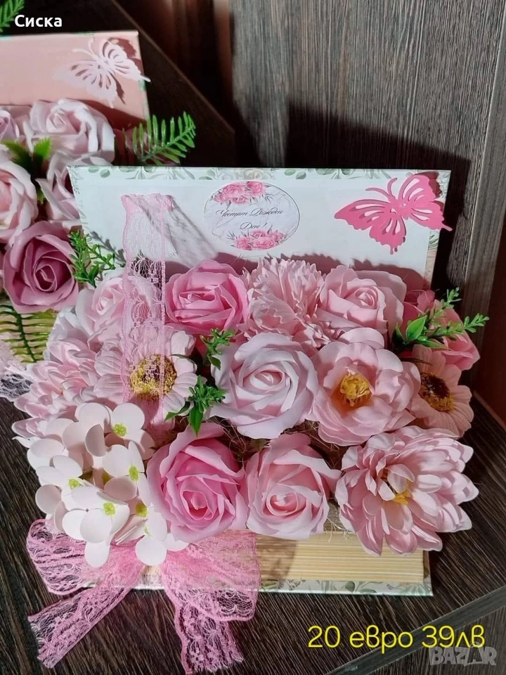 💜Ново💜Търсите си идеален подарък за любимата учителка или за вашите специални поводи.Преглагам ви кутия книга с 15 бр.сапунени цветя