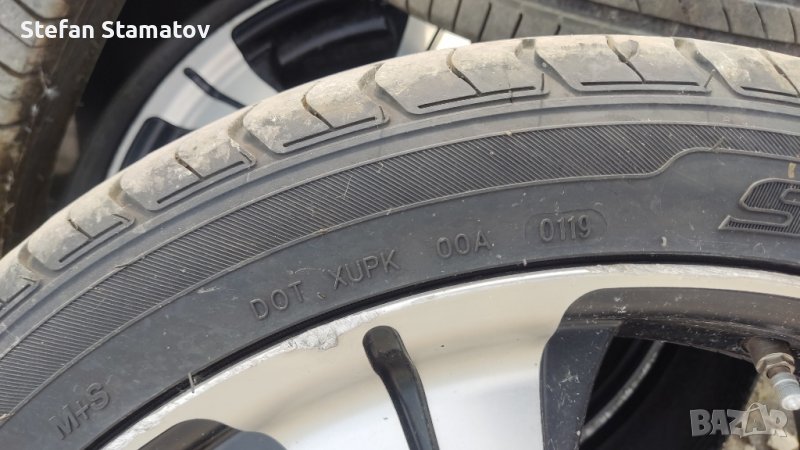 гумите са Дот 2021 двете и 2019 другите две , грайфер 6.5 - 7мм. джантите са 5х114.3 ЕТ35 9J имат и втулки и датчици за налягането .