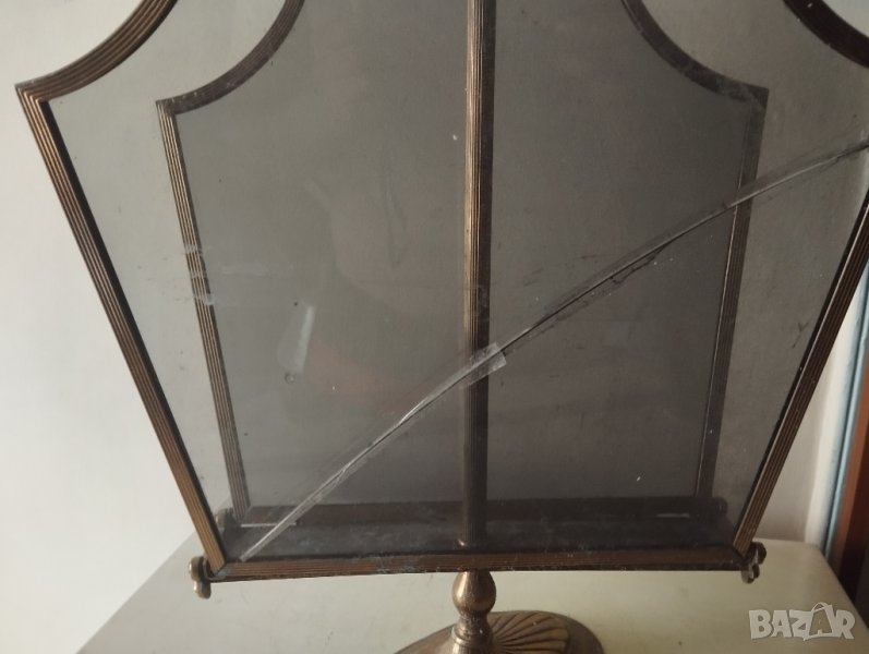 стара поставка за вестници,списания, месинг и стъкло /пукнато от едната страна/