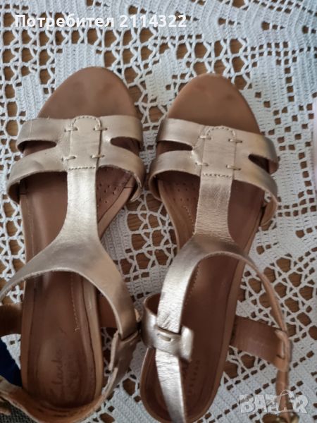 Обувките са от естествена кожа. Не са носени много. На фирма Clarks са, цвят златист.