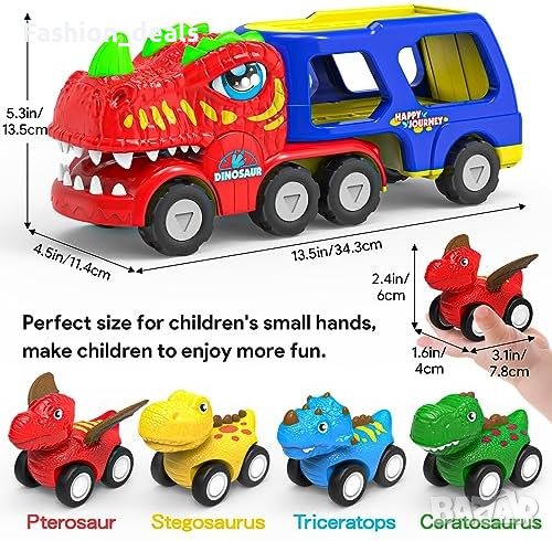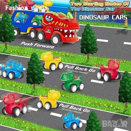 Играчките камиони динозаври са изработени от висококачествена нетоксична пластмаса. повърхността е гладка и няма да нарани кожата на детето, а колелата са прецизно изработени, няма ъгли. Перфектен размер за малките детски ръчички, кара децата да се наслаждават повече на забавлението. Издръжливи и безопасни играчки с динозаври за деца от 5 до 7 години.