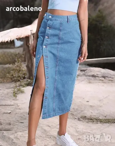 Неправилна дамска дънкова пола с висока талия, 3цвята