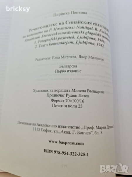 Ново издание на Речник-индекс на Синайския молитвеник (евхологий), първо издание, 2008, 402 стр., твърди корици с автор Пиринка Пенкова, предложено на атрактивна цена.