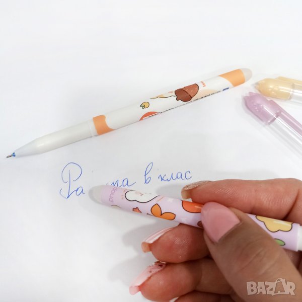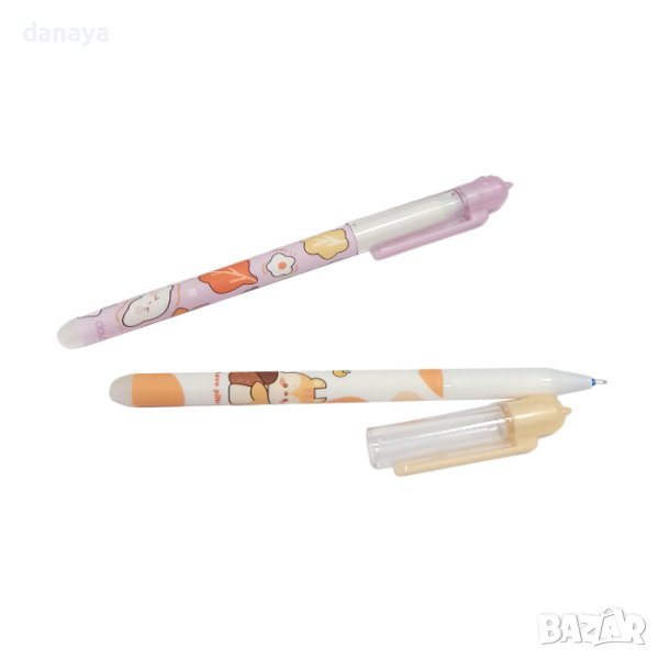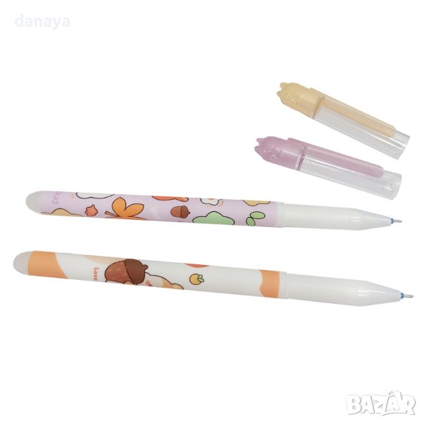 Изтриващ се син химикал с гума с принт на тялото катерички с жълъдчета. Капачката им също е с форма на катеричка. Изтриваем химикал, пишещ със синьо мастило. Изтрива се много лесно и бързо и не оставя следи. Особено подходящ за деца от началните класове. Този симпатичен химикал, детето ще може да изтрие лесно грешно написаното, без да оставя драсканици по листа хартия.