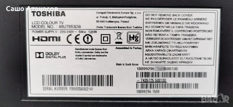 TOSHIBA 48U7653DB със счупена матрица ,17IPS20 ,17MB100 ,VES480QNSS-3D-U01 ,14Y_J1FU13TMGC4LV0.0 → Обява 41938648