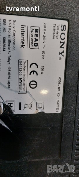 борда е гарантирано работещ Демонтиран от телевизор SONY МОДЕЛ 65XD7505 със счупен дисплей YD6S650CNG04B тесвана от нашия техник