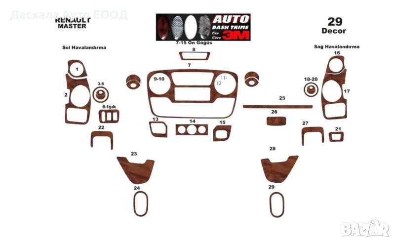 Силиконов стикер Махагон за Рено Renault Master 2010-2020г. , 29 части