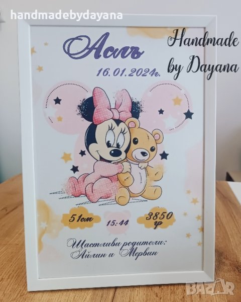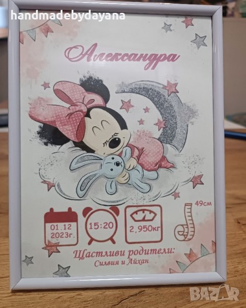 Бебешка визитка в рамка - подарък за новородено → Обява 41943805