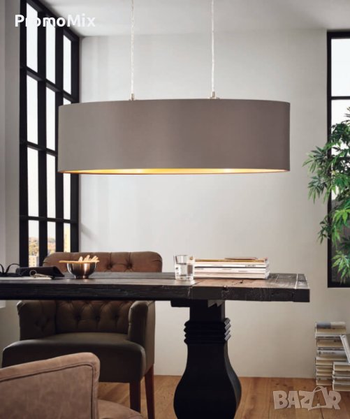 Eglo Maserlo 31608 е висящо осветително тяло, изработено с метална конструкция и текстилен абажур.