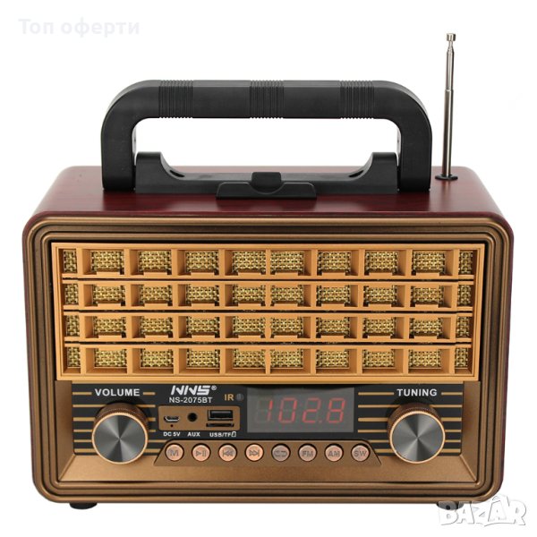 Ретро Блутут радио RADIO FM NS-2075BT, Ретро радио с AUX BT