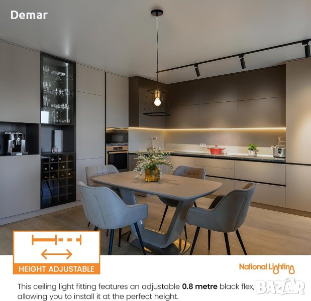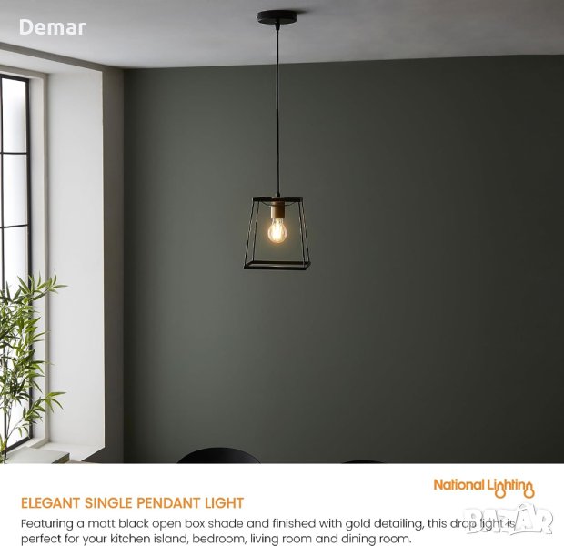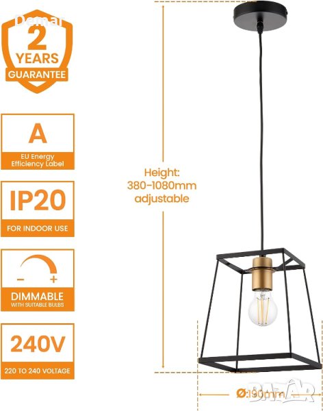 Повдигнете своя интериорен декор с нашата стилна единична висулка с отворена рамка. Тази съвременна таванна лампа разполага с матов черен отворен абажур със златни акценти, идеален за кухни, спални, всекидневни или трапезарии. Неговата регулируема височина и димируема LED съвместимост осигуряват функционалност и елегантност. Тип лампа: 10W LED E27 (крушката не е включена). Размери: Регулируема височина от 380 мм до 1080 мм, Квадратният абажур е с размери 190 мм.