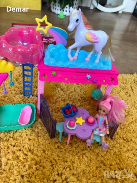 Изживейте очарователни приключения с куклата Челси и нейното бебе пегас в този вълшебен комплект за игра