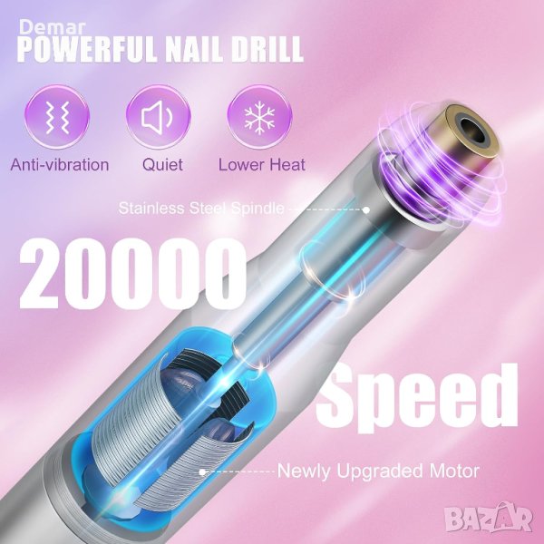 Тази пила за нокти е по-ефективна от традиционните пили за нокти, може да се използва за шлайфане, издълбаване, рязане, полиране и премахване на акрил, прах за потапяне, гел нокти. Осигурете ви безупречни нокти. Лесна за използване, регулируема и ефективна - Лесна за работа, тази електрическа пила с регулируем контрол на скоростта и посока на въртене F/R, подходяща за използване с дясна или лява ръка. Работи добре за начинаещи. Лесно премахване: Електрическа пила за нокти може да се използва и като инструмент за педикюр за нежно отстраняване на мъртвите кожни клетки, премахване на мазоли и твърда, суха и напукана кожа и прави кожата гладка. Спестете време и пари: Лек дизайн с форма на писалка, лесен за носене, много подходящ за Направи си сам нокти у дома с приятели.