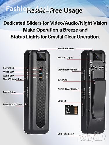 Нова камера за тяло с аудио и видео 64GB ротационен обектив, нощно виждане