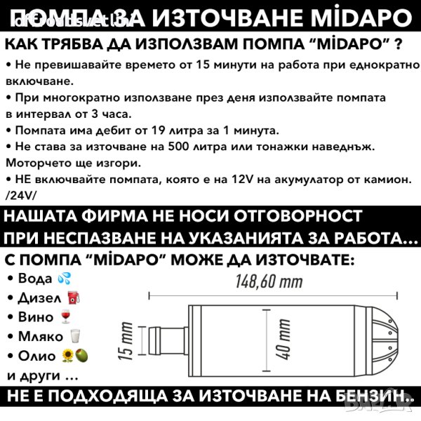 НОВ Модел PVC 12V Помпа за източване на дизел, гориво