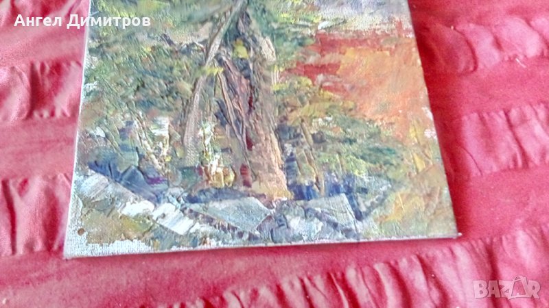 Маслена картина платно , залепено на картон , 25-16 см , папкремъ