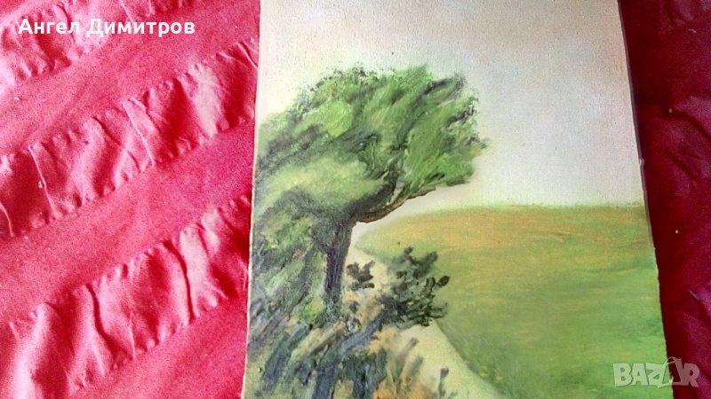 Маслена картина платно подписана , 24-14 см залепено на картон , папкремъ