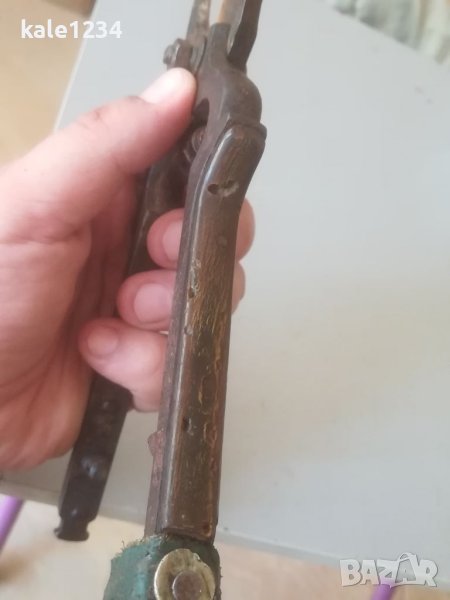 Стара, лозарска ножица с маркировка GANZSTAHI. Ковано желязо. Рогови чирени. Размер на дължина 235мм. Качествено изработена. Ножицата е в автентичен вид, не заточвана или почиствана с препарати и шкурки! Цена 50лв. Изпращам с опция преглед и тест.
