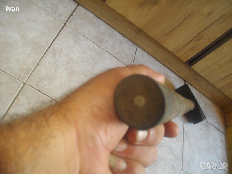 Поставени 2 метални ръчно кавани клина в главата на дръжката.
