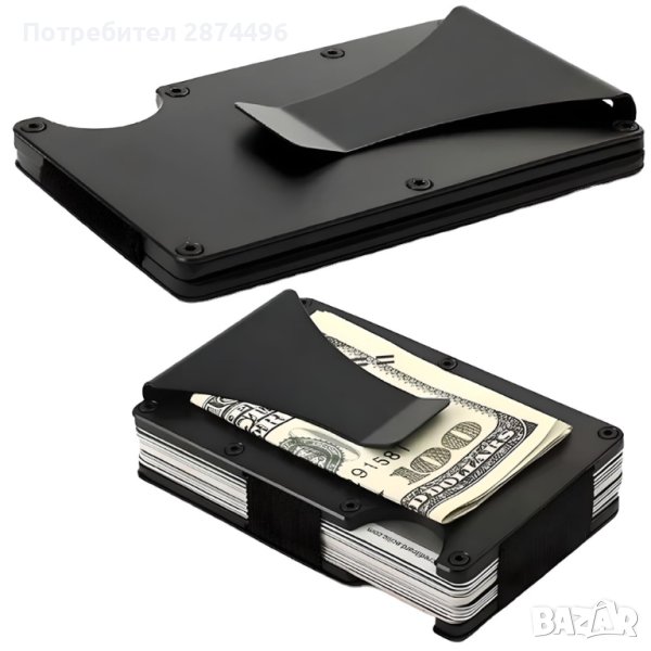Черен картодържател за безконтактни карти с RFID защита → Обява 41958714