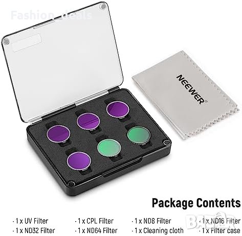 Пакетът включва редица филтри, които отговарят на различни сценарии за снимане. Той съдържа 1 UV филтър, 1 CPL филтър и 4 ND филтъра (ND8, ND16, ND32, ND64). Тези филтри са основни инструменти за постигане на желаната експозиция и творчески ефекти при различни условия на осветление.