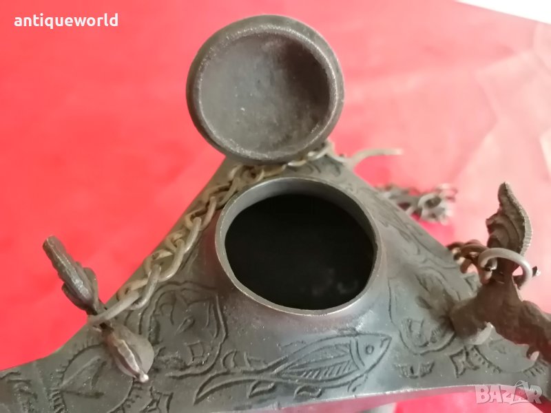 Старинна Бронзова ОСМАНСКА Маслена Лампа Тройна