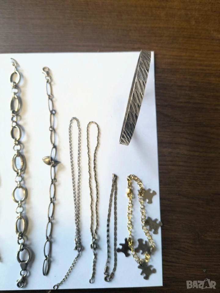 Сребърни гривни.Последните две от горе на долу са за крак.Проба 925. Обявената цена е за грам.Изпращам с преглед и тест.