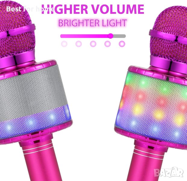 Микрофон Fede за деца и възрастни, безжичен Bluetooth микрофон с мигащи цветни LED светлини Преносим високоговорител Караоке машина, Поддръжка на домашен KTV плейър Устройства с Android и iOS за парти пеене