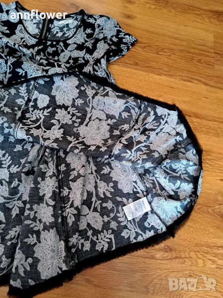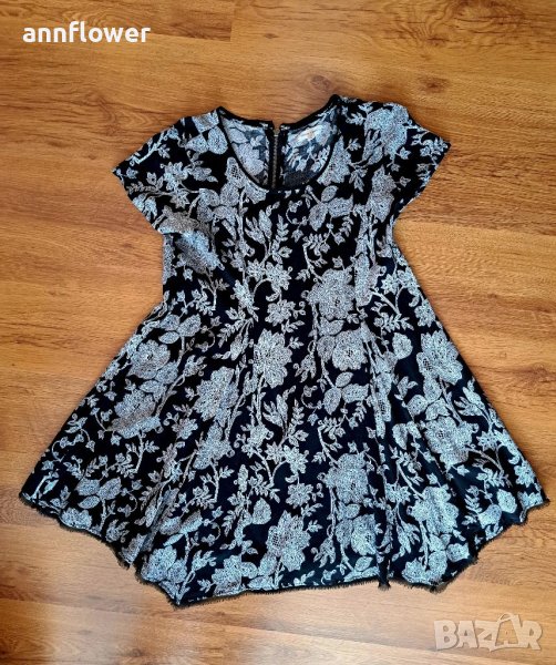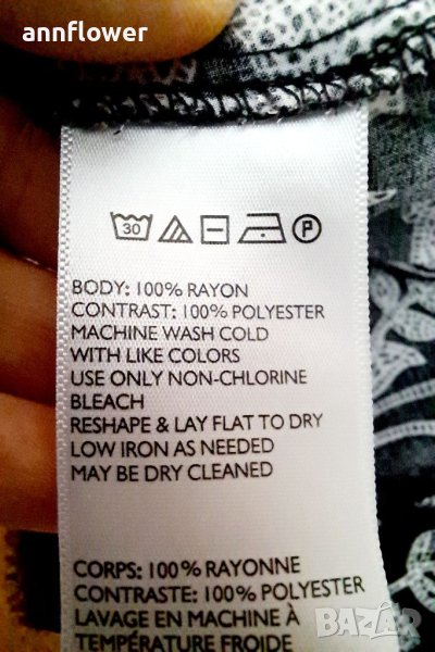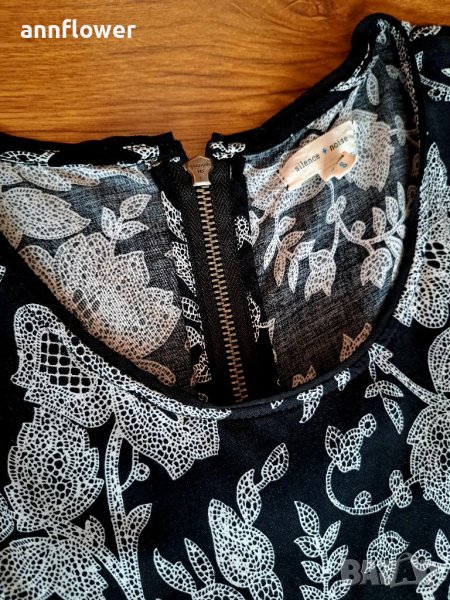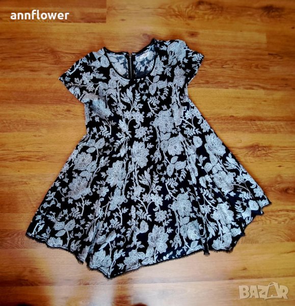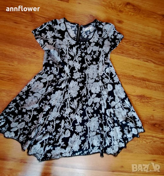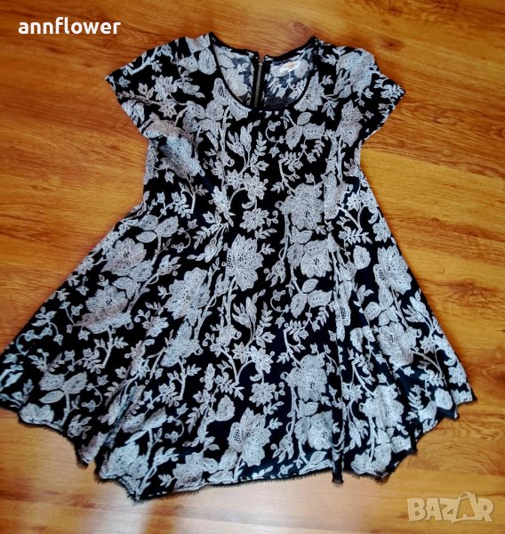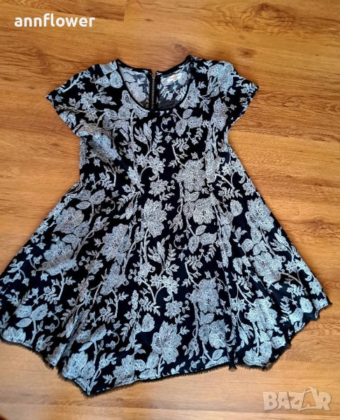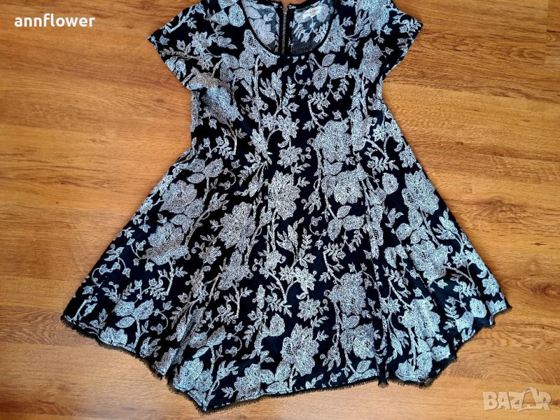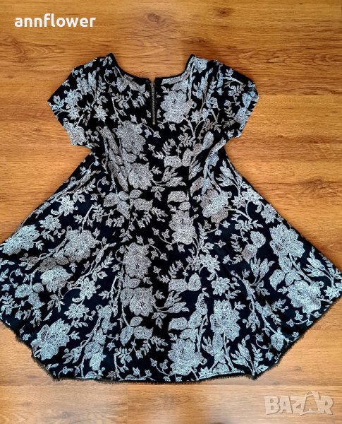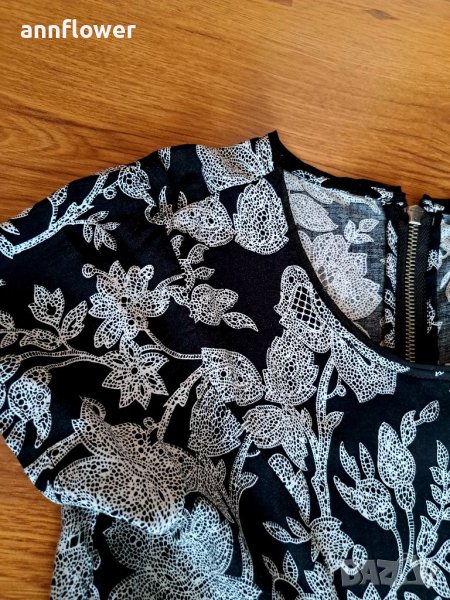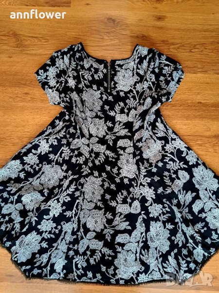 Роклята е като нова и оригинална. Цвят черно и бяло. Размер S . Дължина 78см, ширина на рамената 40см, ширина в мишниците едностранно измерена 45см, в талията 46 свободен модел.
