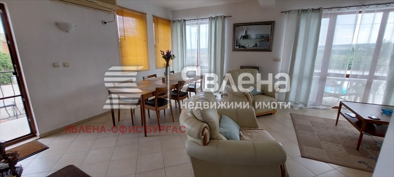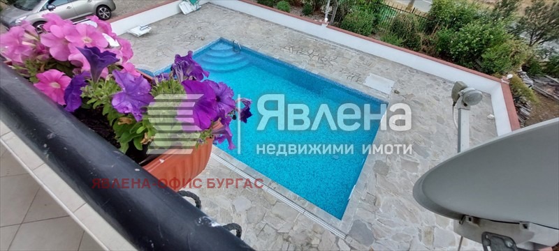 ЕКСКЛУЗИВНА ОФЕРТА! Явлена продава самостоятелна къща с РЗП 155,7 кв.м. и двор 495 кв.м. На първи приземен етаж има трапезария с кухня, мокро помещение, WC и стълбище към втори етаж. На втори етаж има 3 спални, две бани-тоалетни, две тераси. В двора има прекрасен басейн - поддържан, 8м на 5 м, с 1,2 м. максимална дълбочина, А детската част е с 3 м. диаметър. Отделни партиди за ток и вода. Намира се на 15 км. от Слънчев бряг и на 35 км. до летище Бургас. Акт 16 от 07.08.2007 г. ИД135769 РК 2191 Брокер Попова