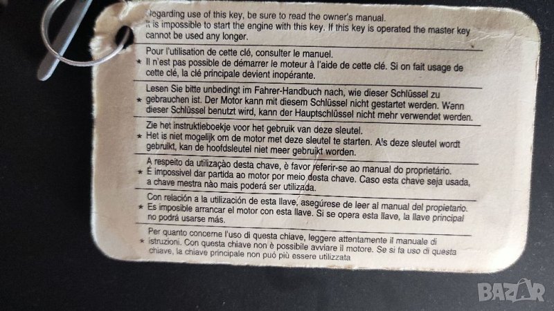 Ключ червен без чип (само за отваряне на вратата 3ти резервен) неотварян оригинален - 10€ !