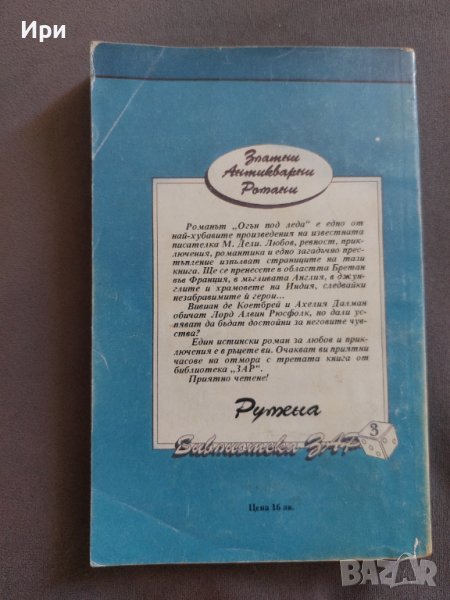 Романът "Огън под леда" е едно от най-хубавите произведения на известната писателка М. Дели. Любов, ревност, приключения, романтика и едно загадъчно престъпление изпълват страниците на тази книга. Ще се пренесете в областта Бретан във Франция, в мъгливата Англия, в джунглите и храмовете на Индия, следвайки незабравимите й герои... Вивиан де Коетбрей и Ахелия Далман обичат лорд Алвин Рюсфолк, но дали успяват да бъдат достойни за неговите чувства? Един истински роман за любов и приключения е в ръцете ви. Очакват ви приятни часове на отмора с третата книга от библиотека "ЗАР". Приятно четене!