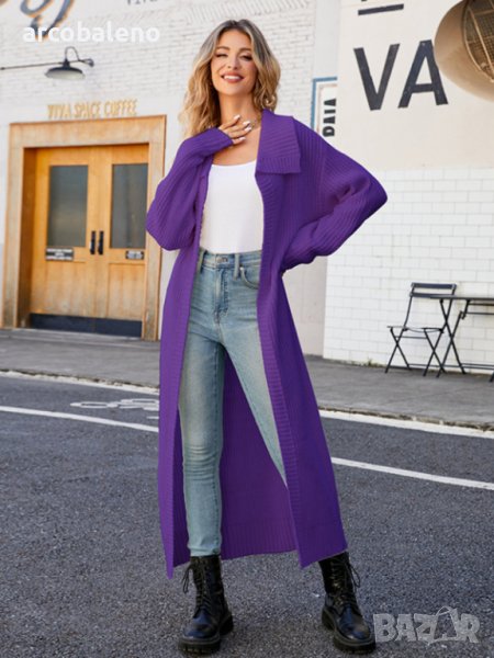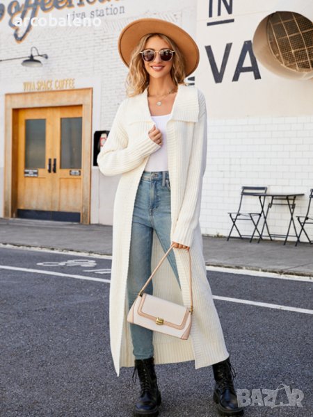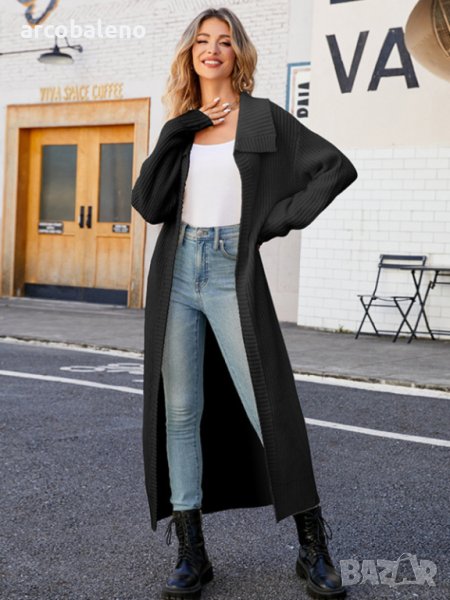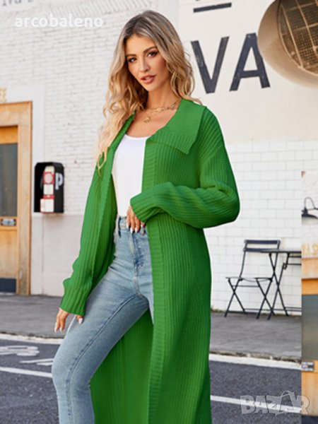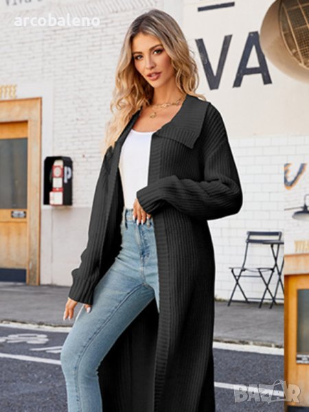 Нов стил дамска дълга плетена жилетка с ревери, 4цвята - 024