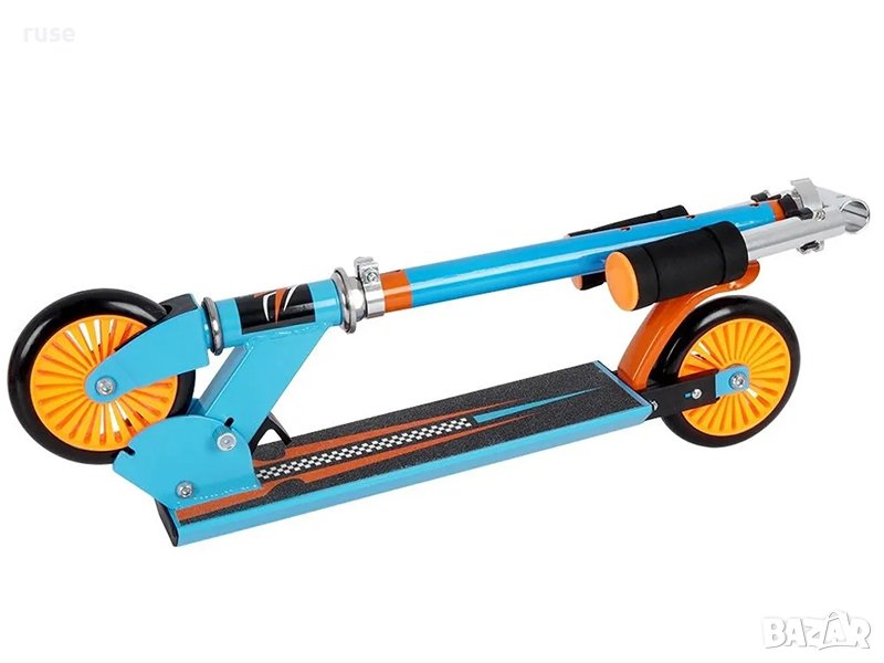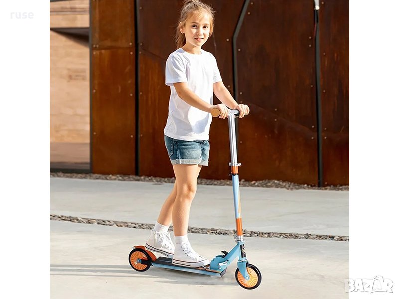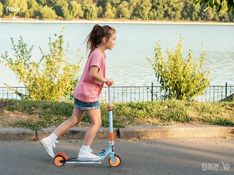- ЗА ДЕЦА И МЛАДЕЖИ - двуколесна тротинетка с колела с диаметър 120 мм. Продуктът е предназначен за деца от 5 годишна възраст. Максимална товароносимост - 50кг. Подложката е с размери 34,5 х 10 см. Общата дължина на тротинетката е 65см.