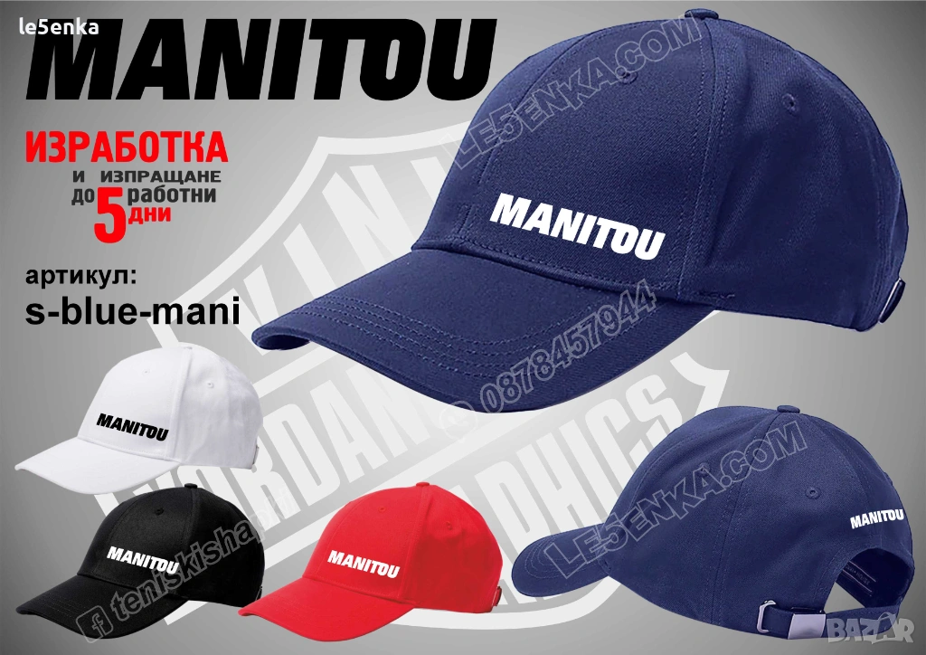 Посочената цена е за шапка и тениска комплект. Само шапка - 18 лв. ,а само тениска - 32 лв. Тениските са изработени от качествена памучна материя - различна номерация и цветове - черен, син, червен и бял. Шапките са памучни с метален клипс или коланче за регулиране - тип бейсболни. Последната снимка в обявата е на таблица с размери за тениските. Изпращаме по Еконт.