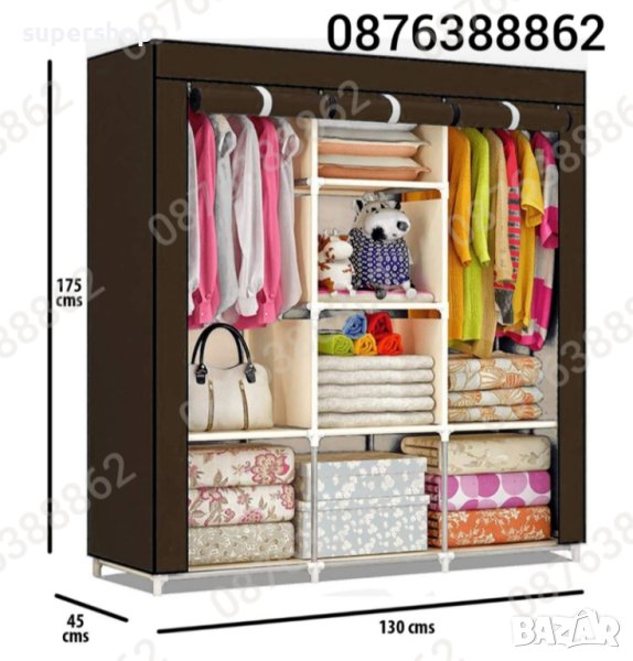 Този преносим гардероб е чудесно устройство за съхранение, за да поддържате спалнята си чиста и подредена. Имате нужда от допълнително място за дрехите си? Този двоен гардероб с покривало от нетъкан плат е абсолютно идеално решение за съхранение на дрехи, обувки, книги, играчки и други!