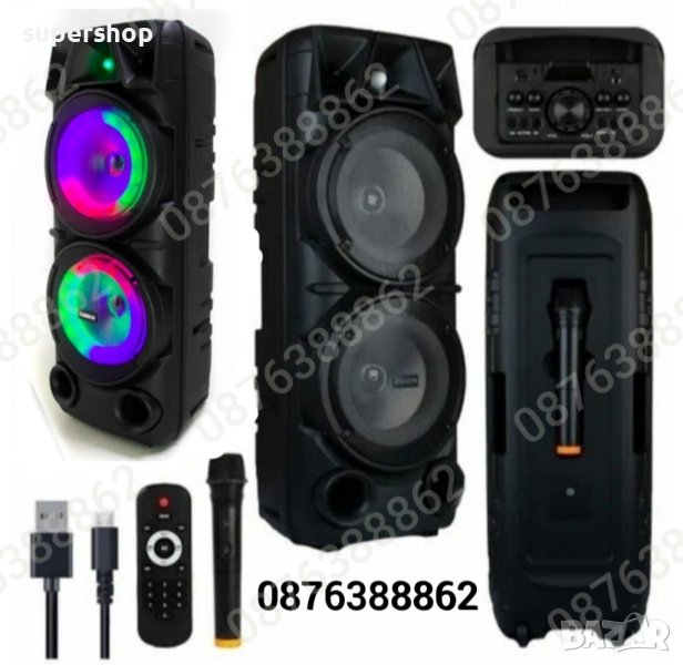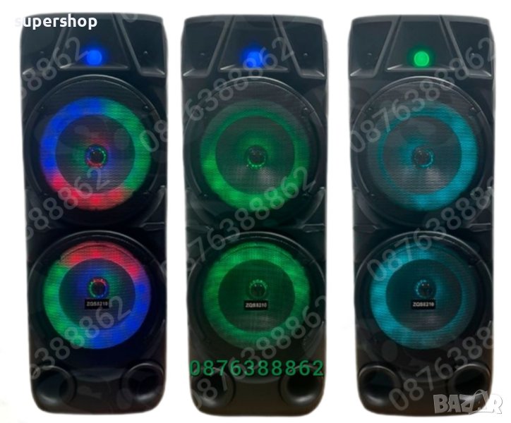 Голяма Мощна Караоке Тонколона BLUETOOTH + Безжичен Микрофон Дистанционно И Светлинни Ефекти, 2х8 инча, висока 73см., модел - ZQS-8210