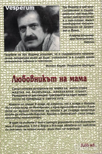 „Днес почина любовникът на мама“ – така започва книгата на Урс Видмер. Авторът, който преподава поетика в Грац, казва в своите лекции, че първото изречение в книгата е зърното на цялата история. В този случай е точно така и това обещаващо начало не е подвеждащо – книгата си остава интересна и завладяваща до самия край.