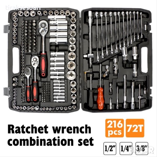 Гедоре 216 части CR-V , комплект вложки и аксесоари 1/4" и 1/2", KraftRoyal