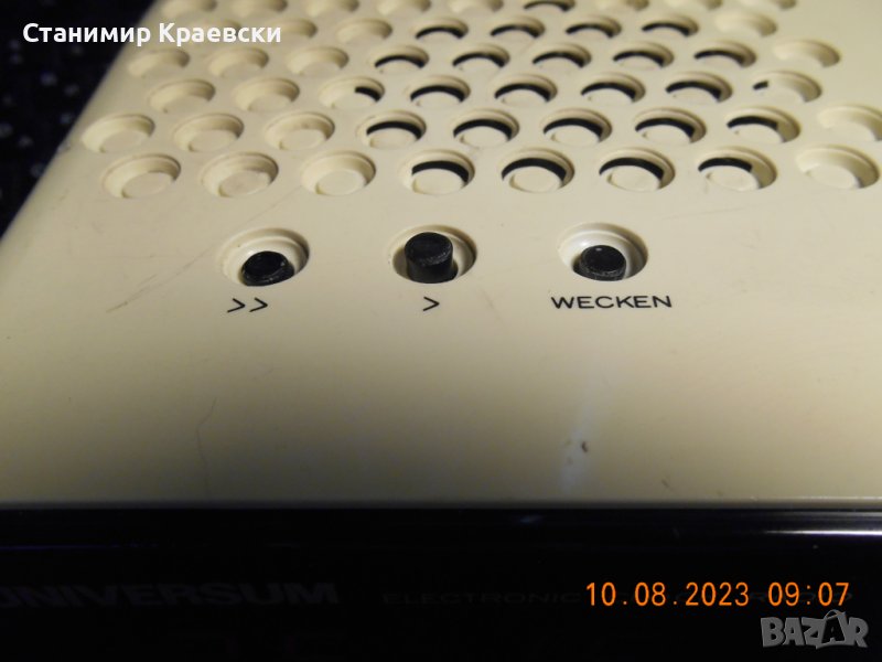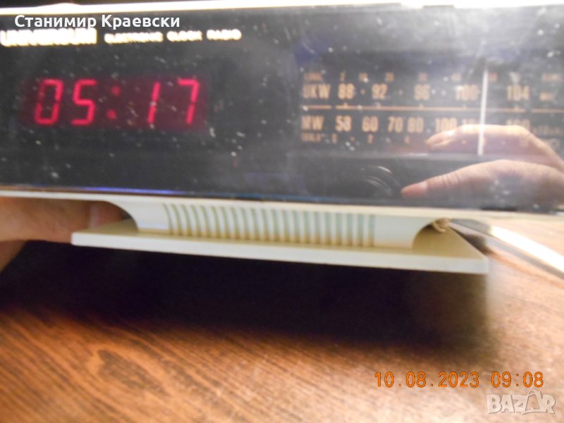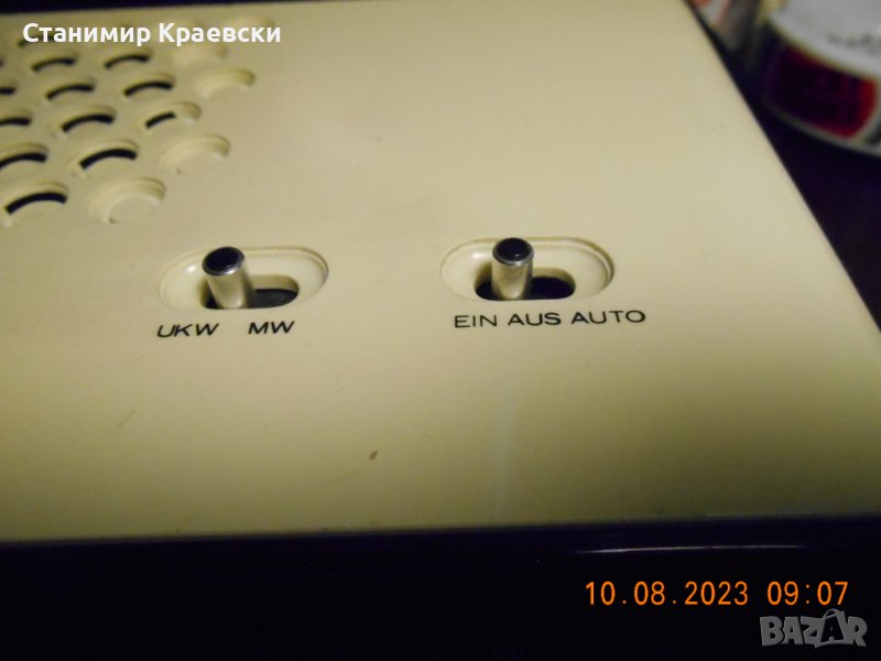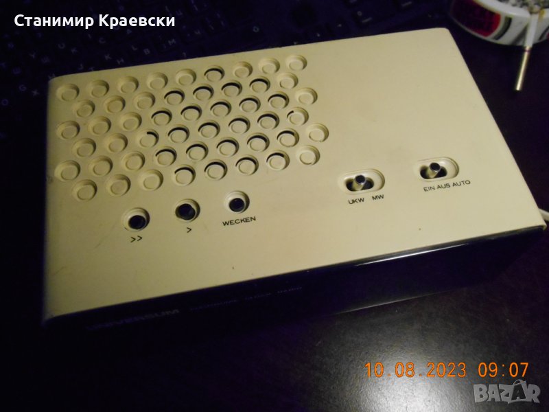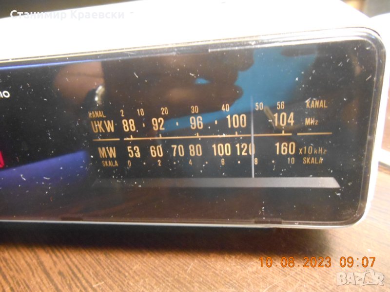 Радио-часовника работи безпроблемно Радиото хваща отлично Запазен външен вид - нормални следи от употреба Кабелна антена Скалата по онова време е била до 104 Цвят - бял / почти няма отенъци на жълто