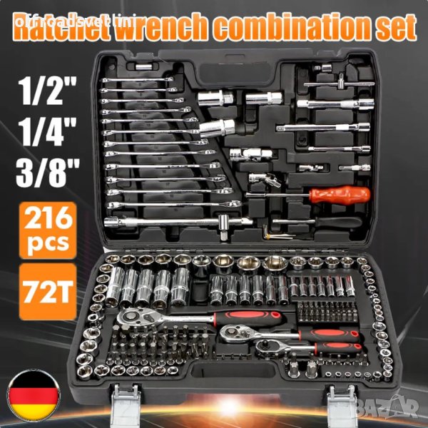 Гедоре 216 части CR-V , комплект вложки и аксесоари 1/4" и 1/2", KraftRoyal