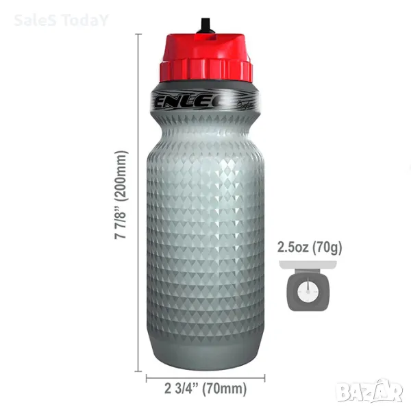 Лека и удобна бутилка за вода, идеална за колоездене. Изработена от здрав и безопасен за здравето материал (BPA-free), с вместимост 650 мл. С ергономична форма за лесно захващане и стандартен размер, подходящ за всички велосипедни поставки. Подходяща както за студени, така и за топли напитки.