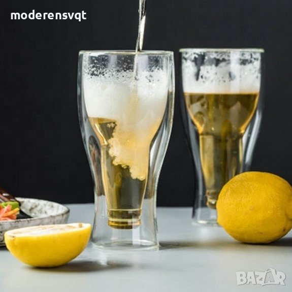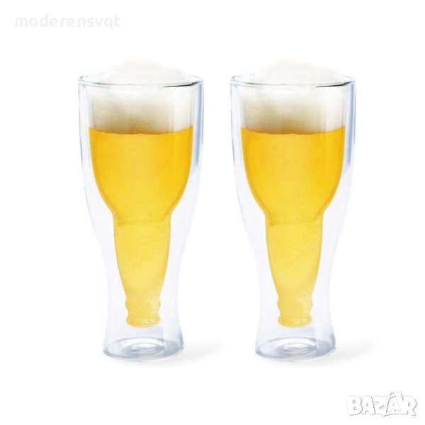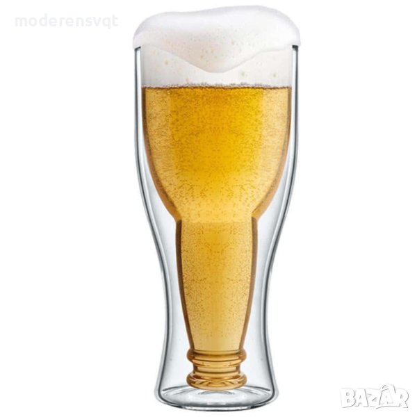 Двустенна стъклена чаша за бира с форма на обърната бутилка