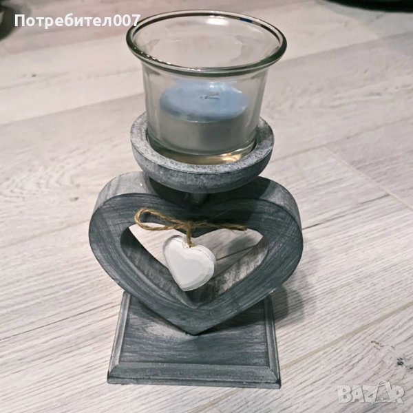 Свещник "Дървено сърце", Сив